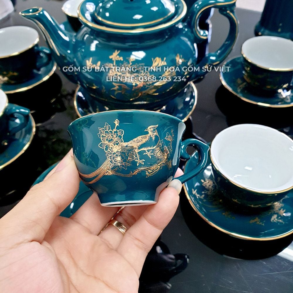 Bộ ấm chén Vinh Hoa Phú Quý men xanh Mallard Cao cấp