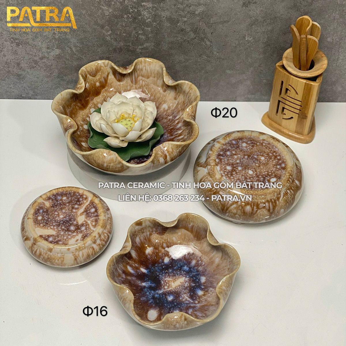 Phần miệng bát được thiết kế cánh bèo lượn sóng, tỏa ra bên ngoài giống như một bức tường thành bảo vệ dòng nước. khiến cho phần hoa thả vào bát không bị che khuất, nguồn nước tài lộc và những cánh hoa may mắn sẽ được tôn vinh giá trị.